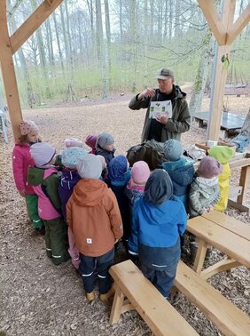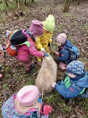 Ein herzlicher Dank geht auch an Alexander Rothenbacher, zertifizierter Waldpädagoge aus Öpfingen. Zum zweiten Mal haben unsere Erzieherinnen den besonderen Aktionstag geplant und unsere Waldtrolle durften sich mit ihm auf die Suche nach Tierspuren und den verschiedenen Bewohnern des Waldes machen: von den kleinsten Käfern bis zu den großen Bäumen gab es viel zu entdecken. Am Ende zeigten sich sogar Dachs und Fuchs vor ihrem selbst gegrabenen Bau. Ab der ersten Sekunde hat Alex zurecht die ungeteilte Aufmerksamkeit aller Kinder, die auch zuhause noch so viel vom Gelernten und Erlebten zu erzählen wussten.