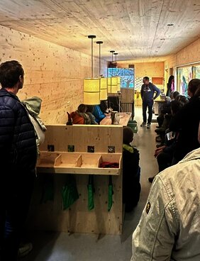 Stellvertretend für unseren Verein, Träger des Kindergartens, haben Daniela Gall, 1. Vorstand und Frank Magg, Vorstand Finanzen und Projektleiter neuer Waldwagen Kinder, Eltern und Gäste willkommen geheißen im Wald, der unseren Kindern ein so wunderbares Dach bietet. Bei wiederholt stattfindenden Führungen zum neuen Waldwagen wurden Interessierte über den Verlauf des Projekts, die Kosten und die Beteiligung des Vereins an Finanzen und Bauleistung informiert.